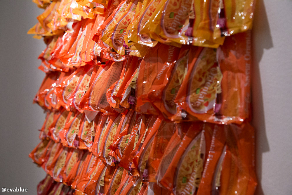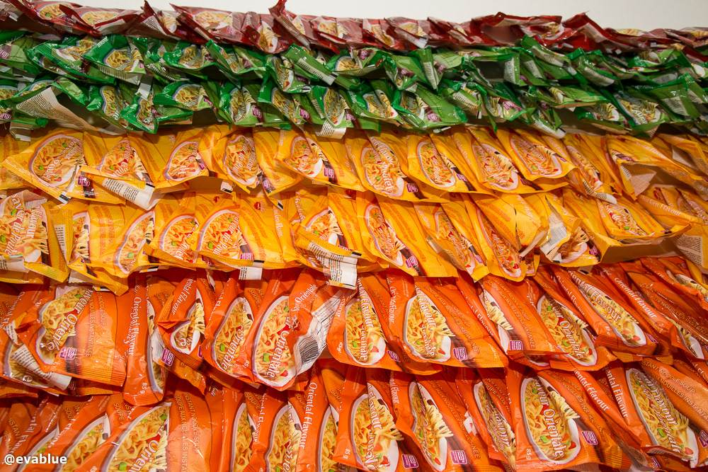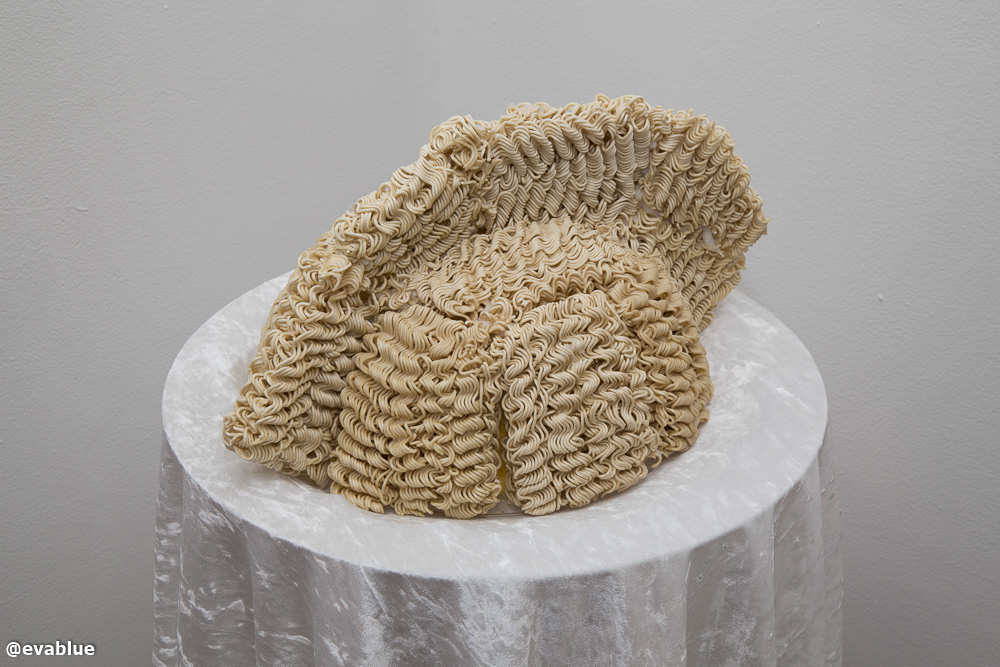The "out, inside; out" project is a site-specific installation. Ramen Deconstructed - where basic packages of ramen are deconstructed in entirety and reassembled.